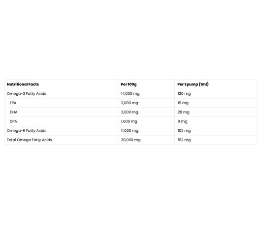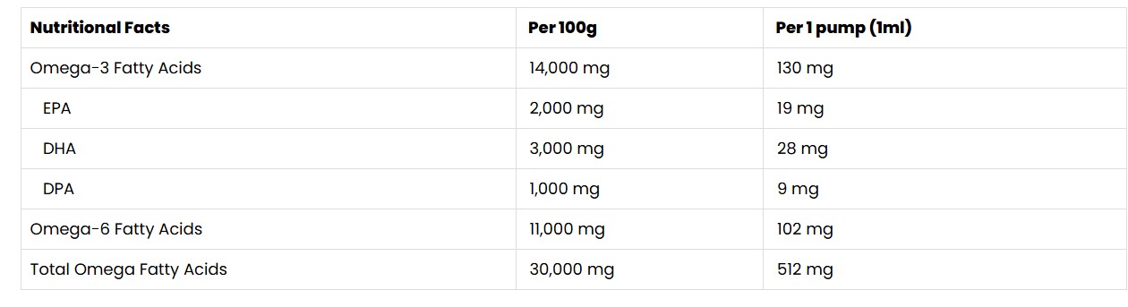 Περιέχει Ωμέγα-3 Ωμέγα-6 και Ωμέγα -9 λιπαρά οξέα.
