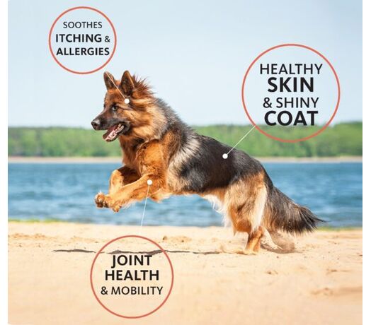 Πλούσιο σε όλα τα 21 λιπαρά οξέα Ωμέγα: Το έλαιο σολομού μας για σκύλους περιέχει 7 φορές περισσότερα ωφέλιμα συστατικά από άλλα ιχθυέλαια, χάρη στην πατενταρισμένη διαδικασία μας. Είναι πλούσιο σε EPA, DHA και DPA. Αυτά τα ζωτικά θρεπτικά συστατικά διατηρούν το τρίχωμα του κατοικίδιου απαλό, τις αρθρώσεις εύκαμπτες, βοηθούν στην αντιμετώπιση του κνησμού και υποστηρίζουν τη συνολική υγεία.